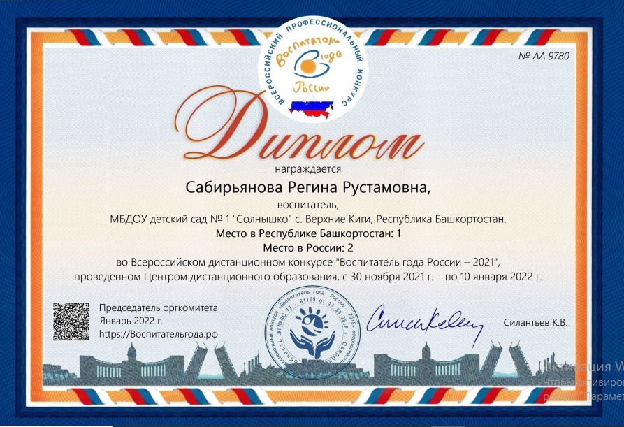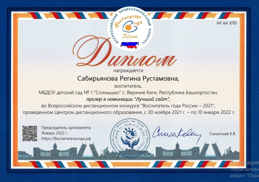 Участие на Всероссийском конкурсе "Воспитатель года России - 2021"