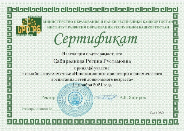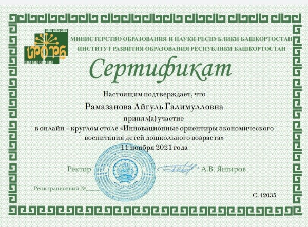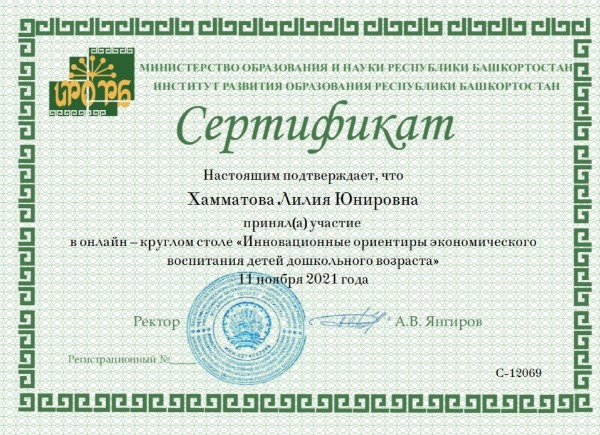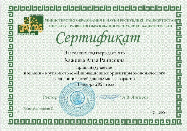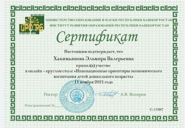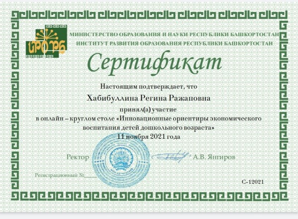 Участие в онлайн – круглом столе «Инновационные ориентиры экономического воспитания детей дошкольного возраста»