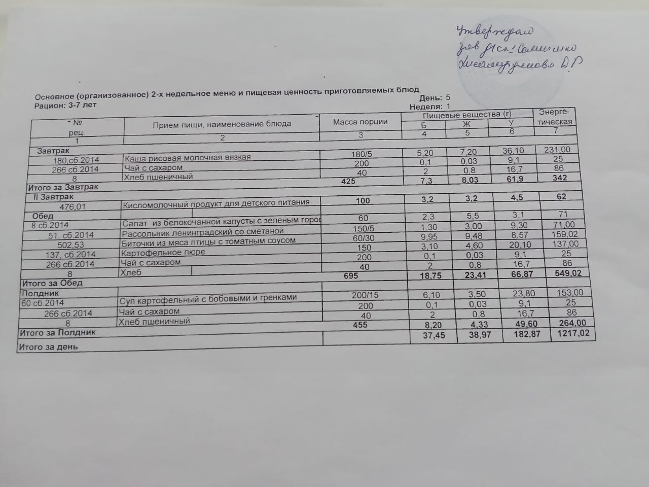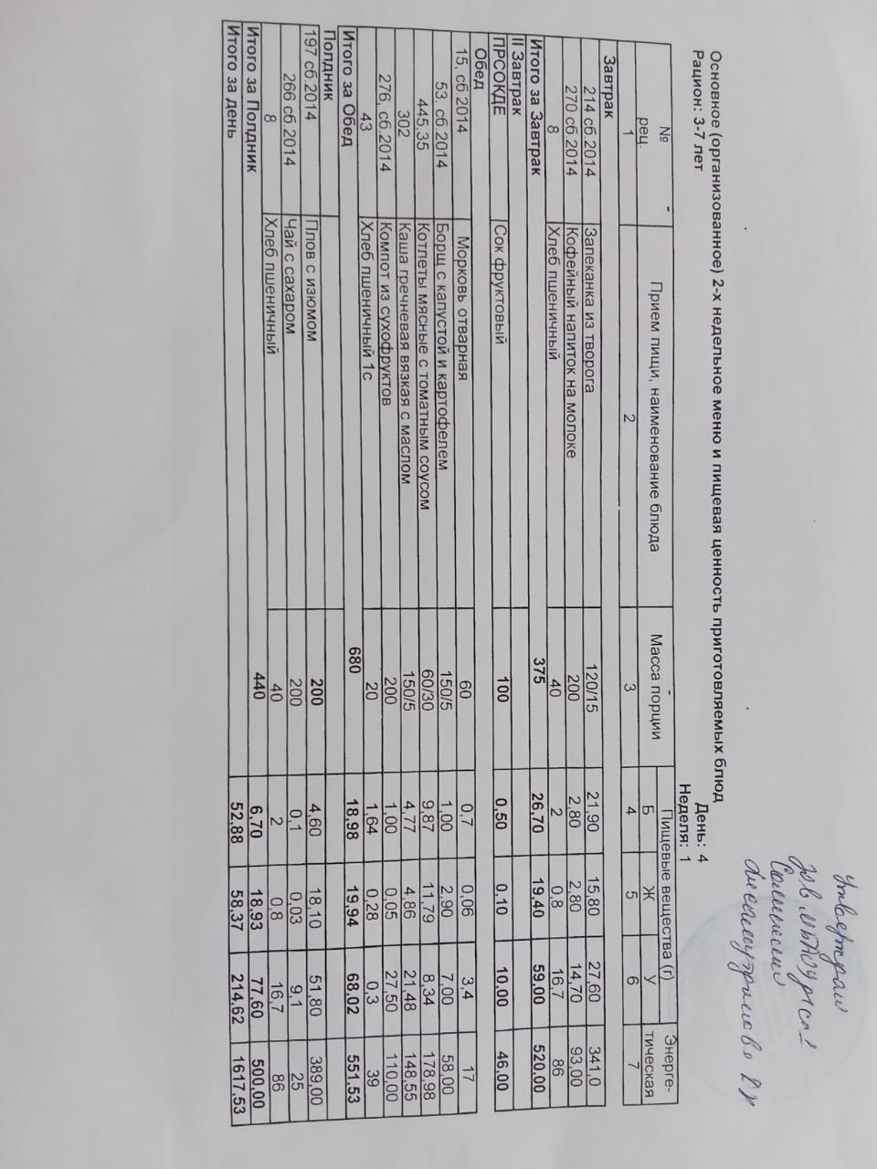Примерное 10 дневное меню для воспитанников